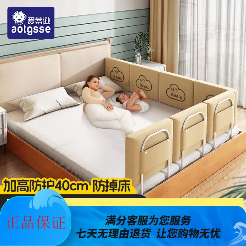 AOTGSSE爱蒂逊【自由拼接】床围栏婴儿防护栏宝宝防磕碰防掉床软包床护栏 卡其色云朵[柔软防磕碰] ' 1米(50厘米*2片)