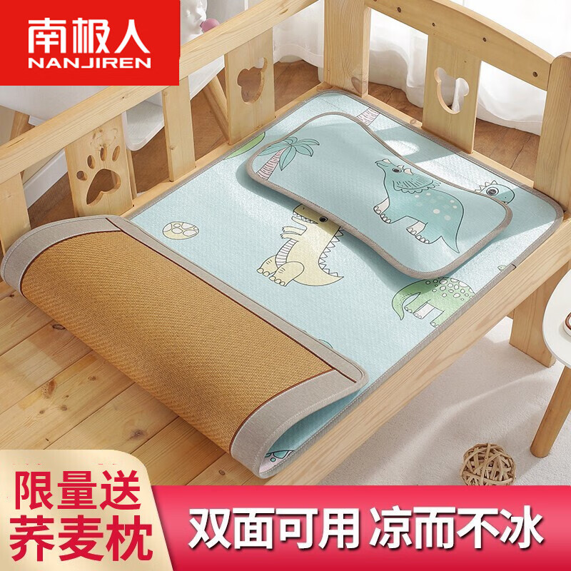 南极人儿童席幼儿园凉席夏季双面两用冰丝席子婴儿宝宝午睡可定做软藤席 恐龙狂欢夜【双面两用婴童裸睡】 50*120cm【song荞麦枕】