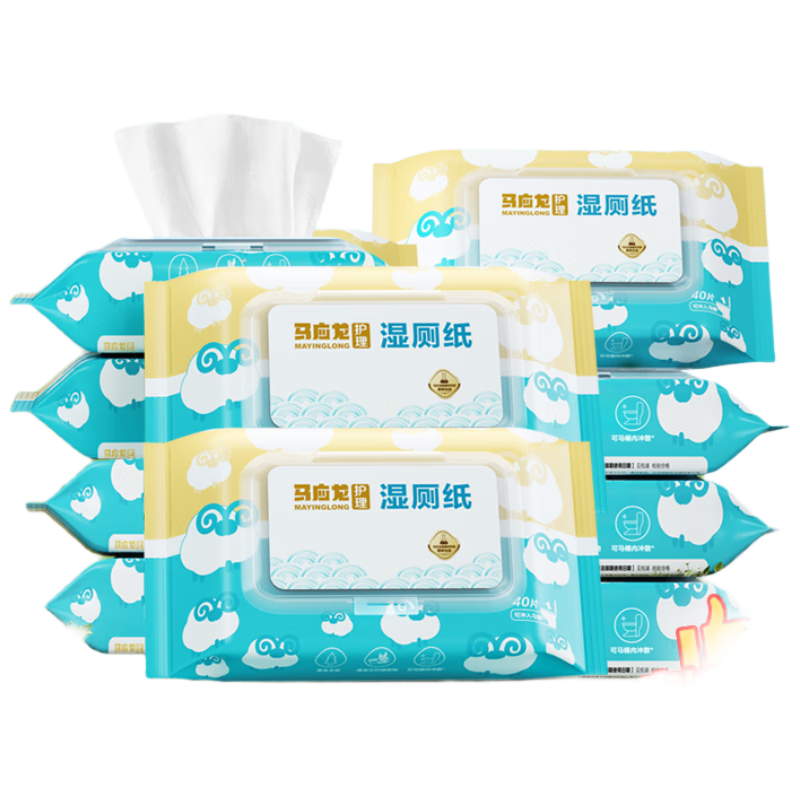 马应龙小羊湿厕纸家庭装止痒洁厕湿巾40抽*10包无刺激湿纸巾婴童适用