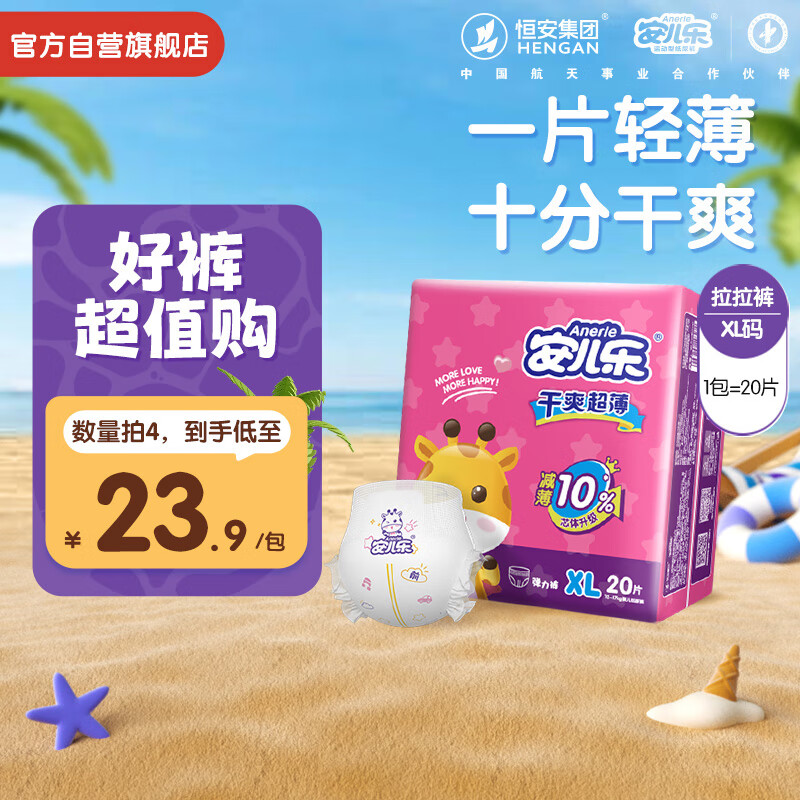 安儿乐(Anerle)干爽超薄拉拉裤XL20片(12-17kg)尿不湿【品牌直供 安心品质】