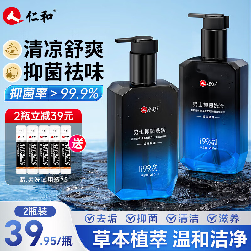 仁和男士私处护理液沐浴露清洁剂阴部止痒抑菌去异味清洗液 【消字号】男士抑菌洗液280ml(2瓶)