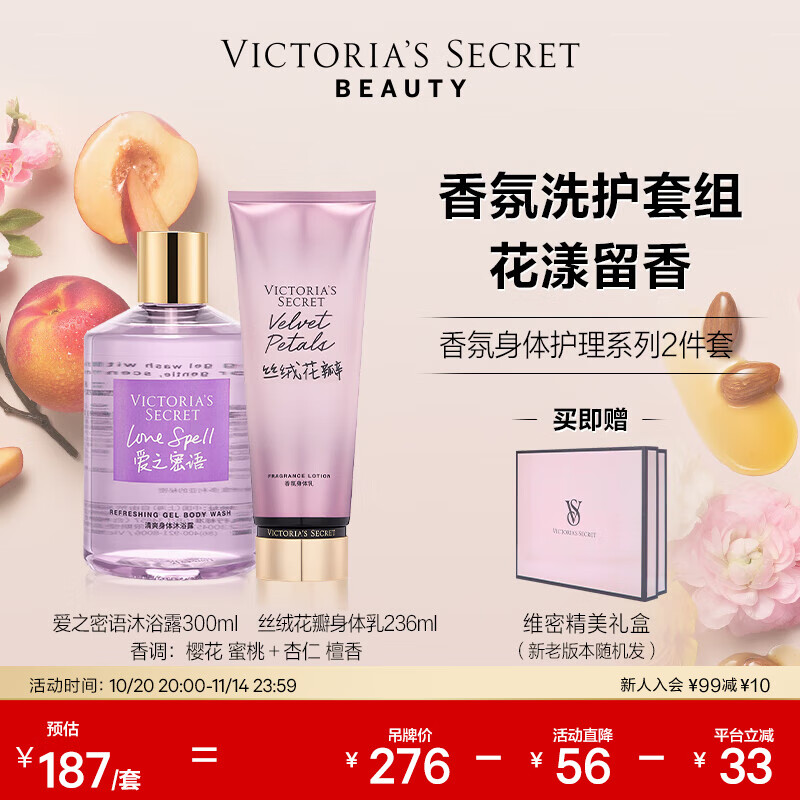 维多利亚的秘密丝绒花瓣维密香氛身体乳沐浴露身体护理套装秋冬滋润女 丝绒花瓣身体乳+爱之密语沐浴露