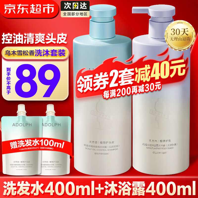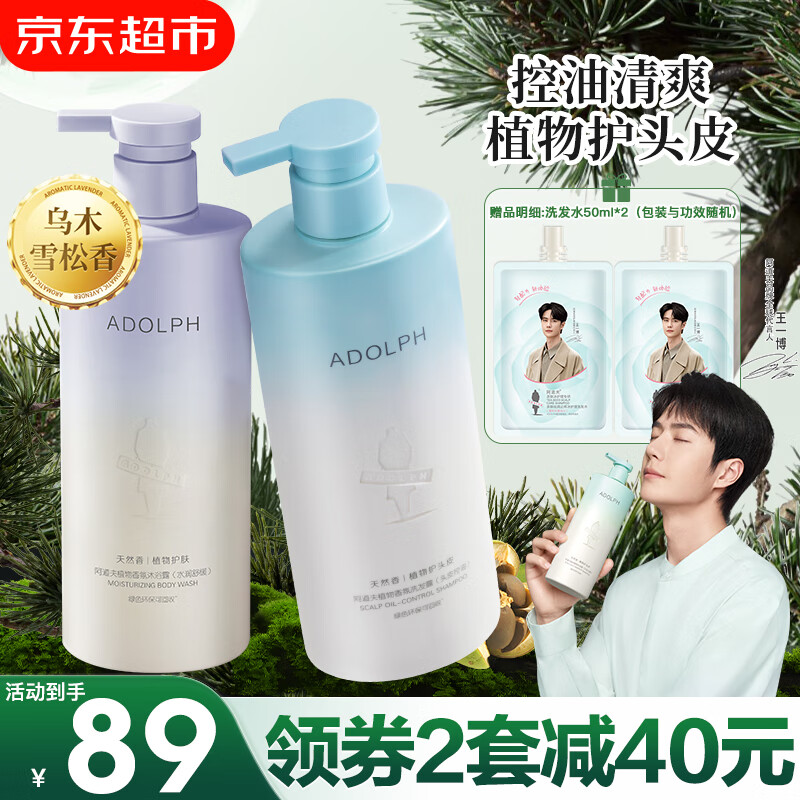 阿道夫植物香氛洗发水沐浴露套装 控油去屑持久留香洗头膏乳洗发露男女 控油洗发水400ml+沐浴露400ml 植物香护理套装