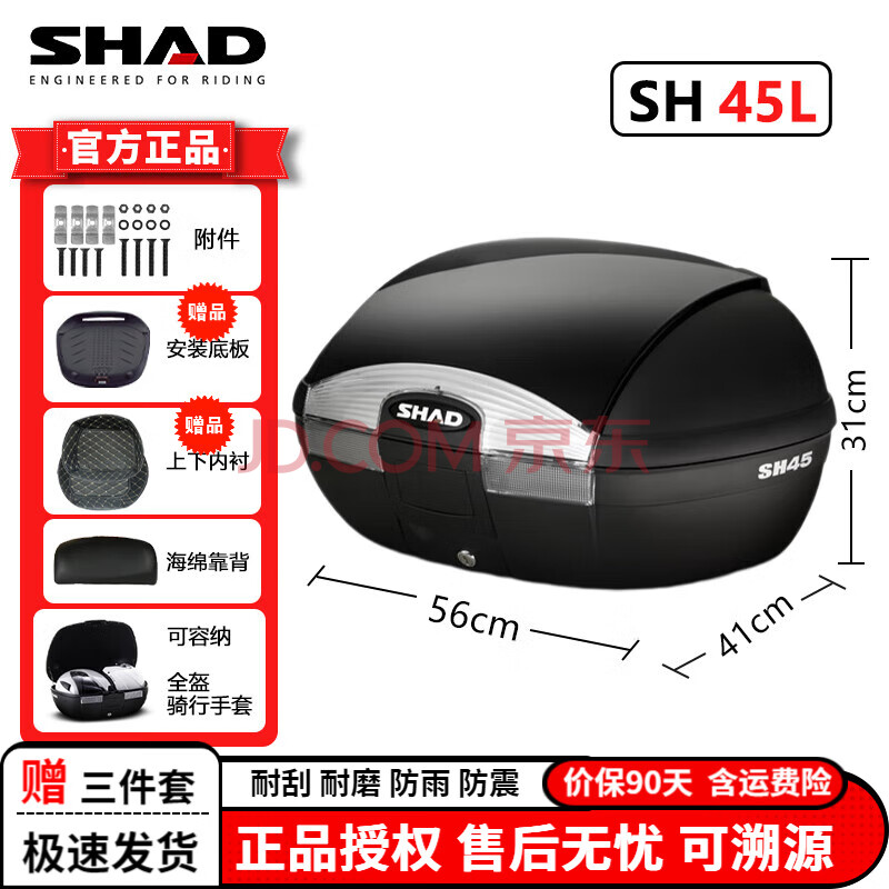 SHAD夏德电动车摩托车尾箱大容量通用后备箱摩旅装备适用本田铃木尾箱 SH45+快拆底座+上下内衬+靠背