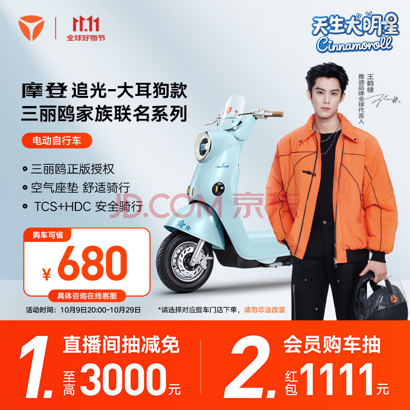 雅迪【三丽鸥家族联名】摩登追光 大耳狗款 电动自行车 高颜值女士生日礼物智能电动车【门店自提】 大耳狗款