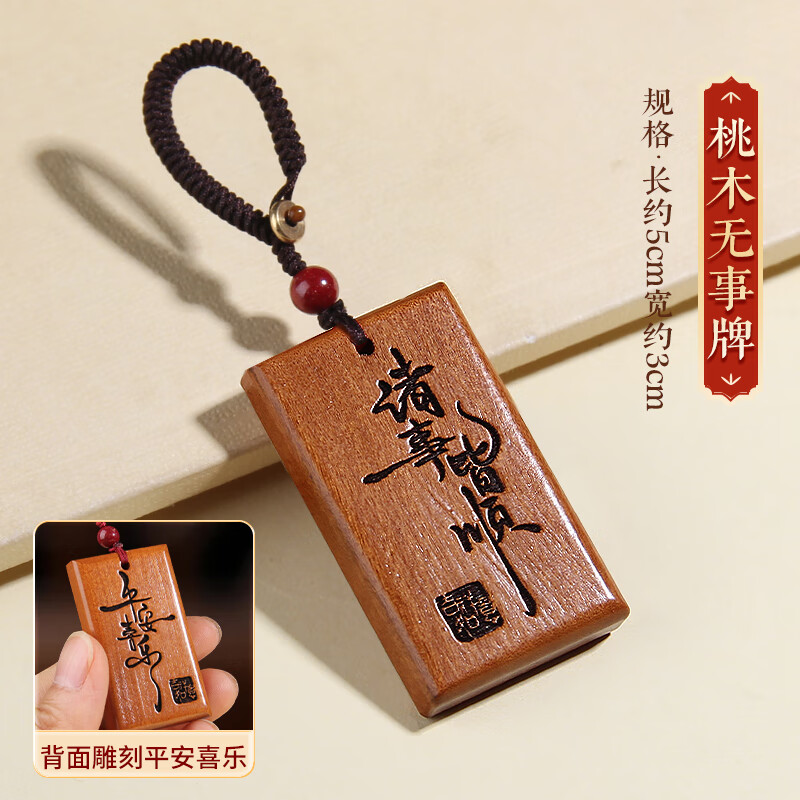 泰山慈航阁正宗老桃木无事牌挂件朱砂成人男女婴儿童随身车挂钥钥匙平安挂饰 桃木无事牌【咖色钥匙扣】