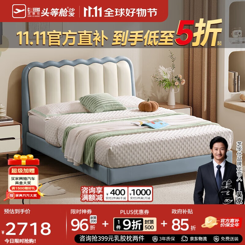 芝华仕(CHEERS)五星布床奶油风小床软包卧室小户型家具带床垫C122蓝1.5m