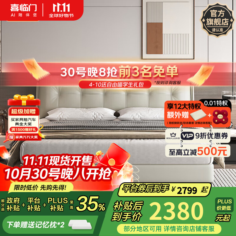 喜临门真皮双人大床现代简约风主卧卧室婚床家具 暖暖[床架] 象牙白-单床 1.8*2米