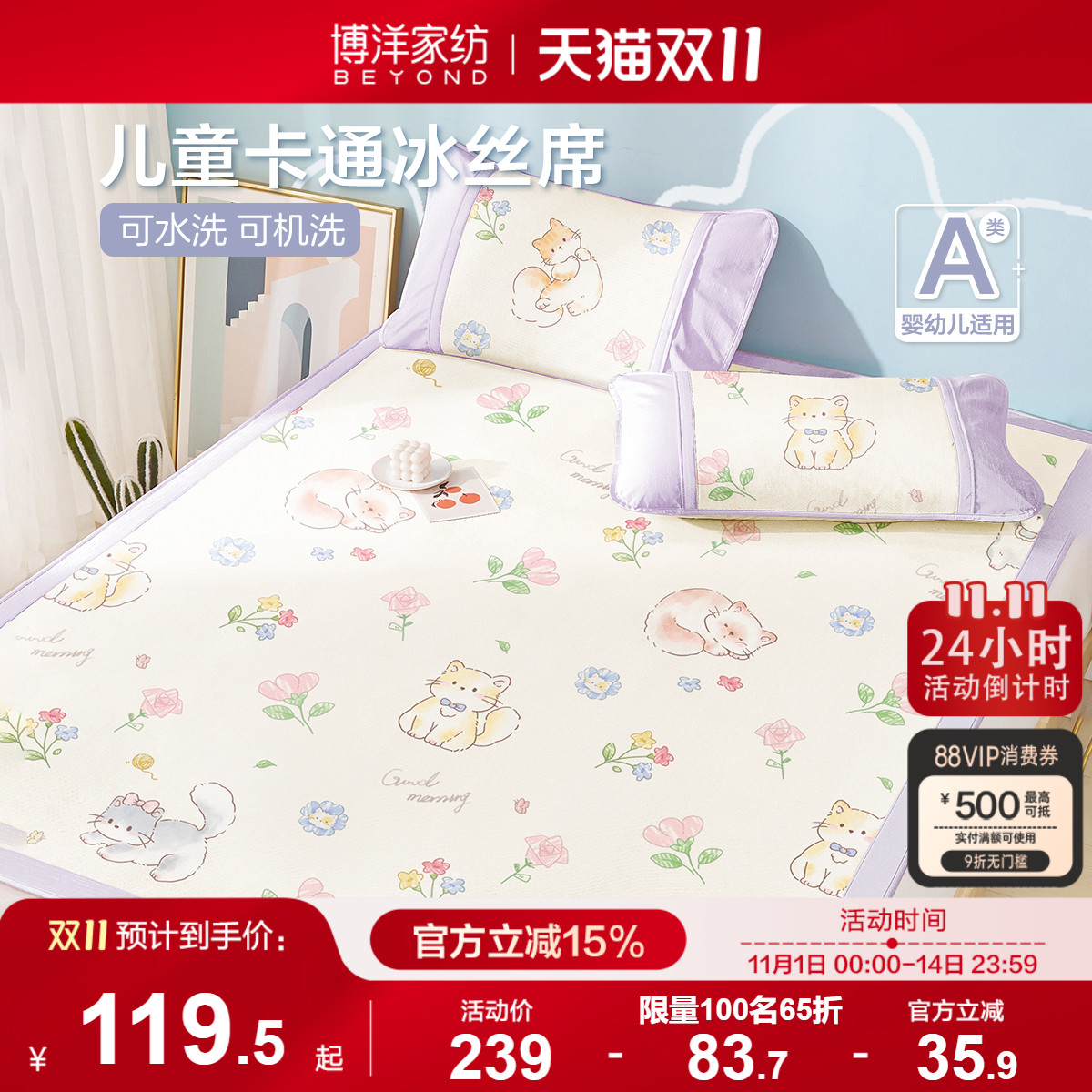 聚划算:博洋儿童凉感冰丝凉席夏季三件套可机洗女孩卡通床笠款软席子1.5