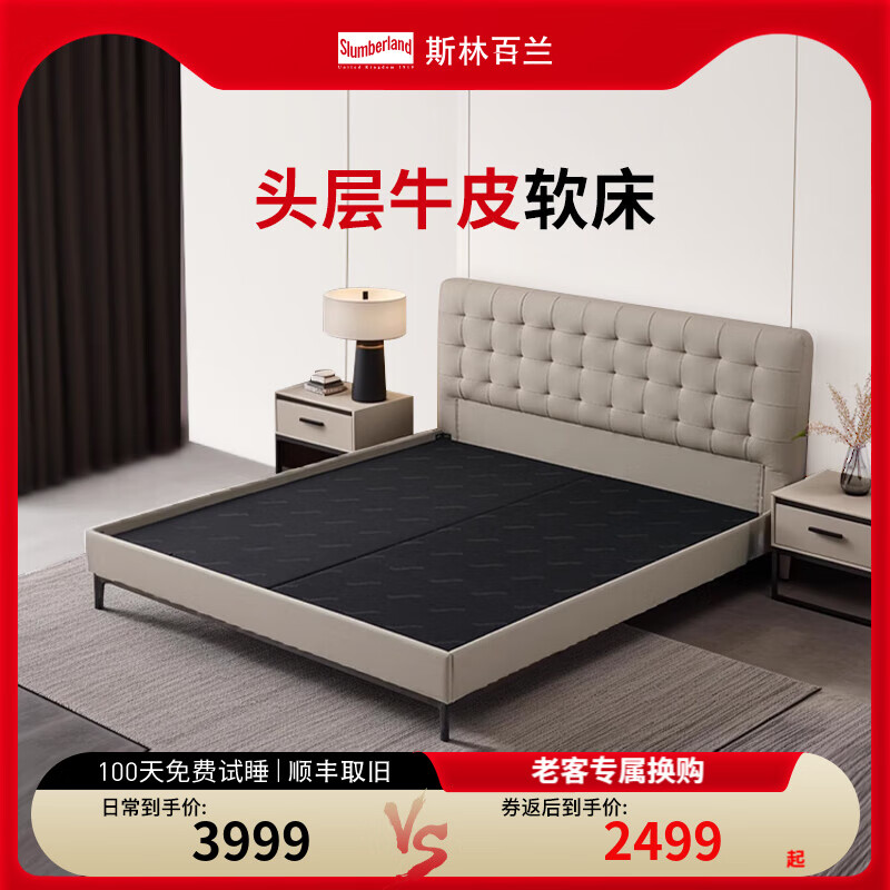 卡其灰色 1800mm*2000mm 斯林百兰皮革现代平铺床板皮床