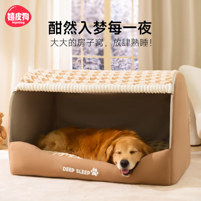 嬉皮狗(hipidog)宠物狗窝四季通用狗狗床冬天保暖狗屋大型犬睡觉的窝封闭式安全感 洛米棕 XL(建议体重40斤内)