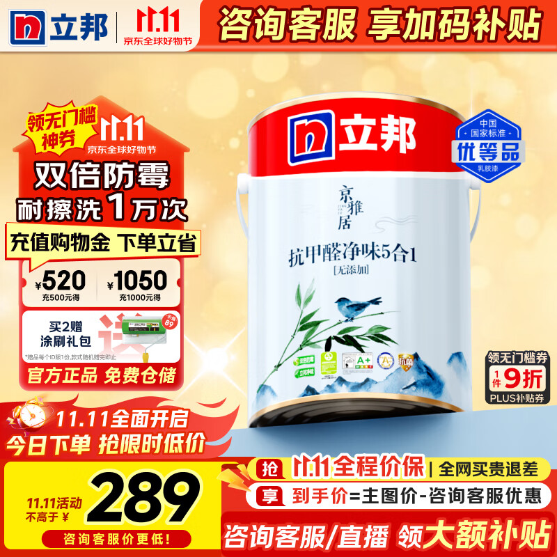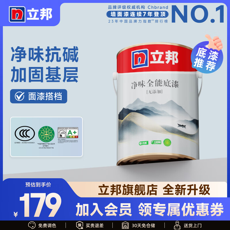 立邦乳胶漆京雅居金标净味全能底漆环保墙面漆油漆涂家用自刷涂料油漆 【净味全能无添加】 5L*1件