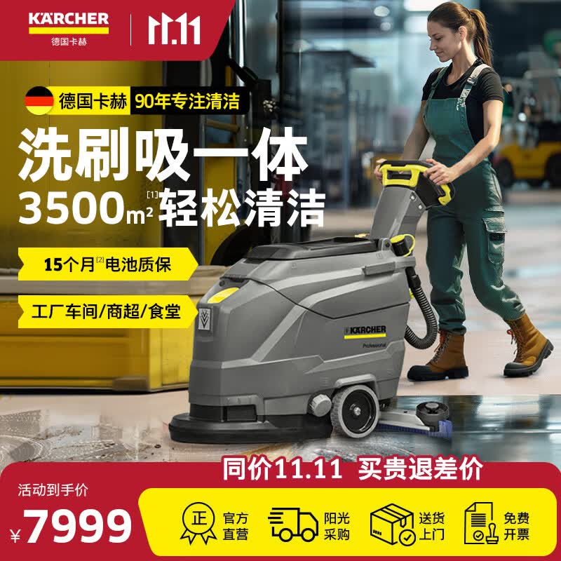 德国卡赫工业洗地机商用工厂车间商超餐厅手推式无线拖地机BD50