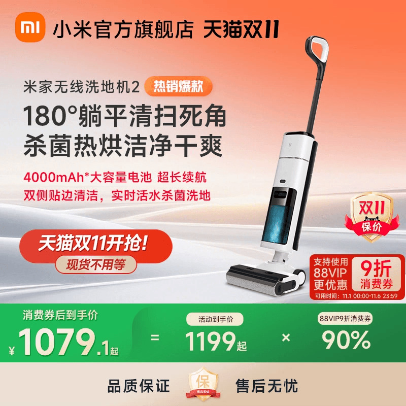 米家无线洗地机2吸拖洗一体平躺平吸尘双贴边