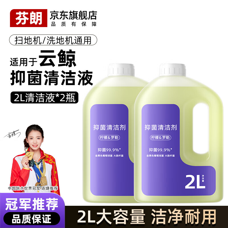 百亿补贴:芬朗适用于云鲸J5/J5X/J6/Pro/MAX扫地机器人专用清洁液逍遥001/002洗地机地面抑菌去污清洁剂配件耗材 【云鲸扫地机通用】抑菌清洁剂2L*2