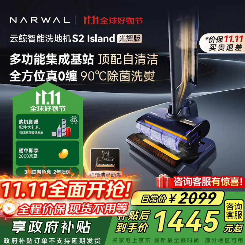 云鲸(NARWAL)【多功能集成基站】智能洗地机S2 Island光辉版 180°躺平 0缠毛 热水洗熨家用吸拖一体拖地机器人