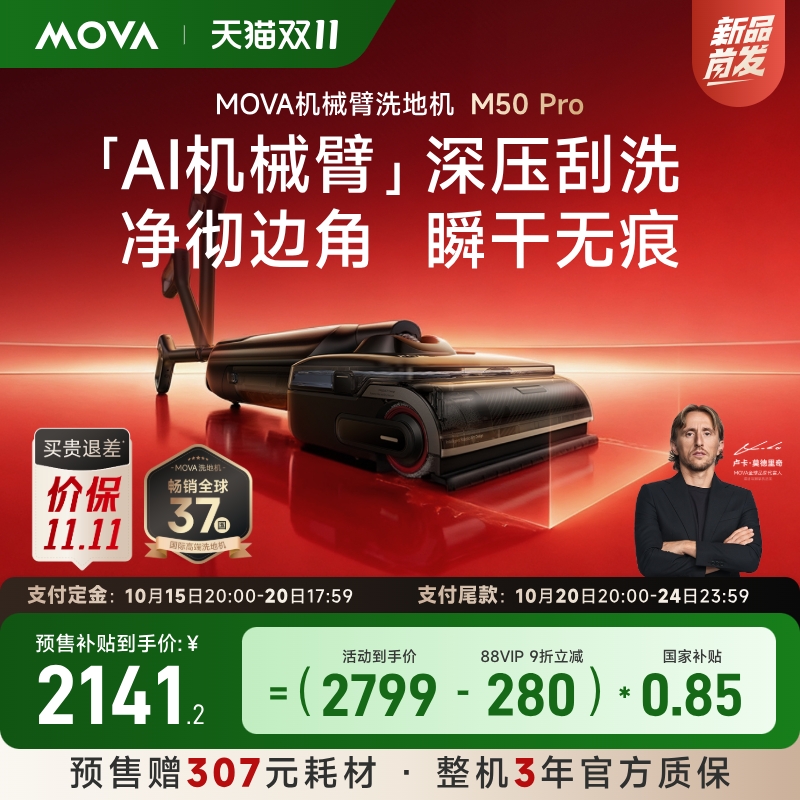 黑色 MOVA 洗地机折叠手柄AI机械臂