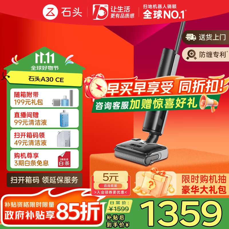 石头(roborock) A30 Pro Steam 洗地机吸拖一体 拖地机洗拖一体90°除菌0缠毛180°平躺AI助力吸尘器家用 A30 CE【质价比之选】