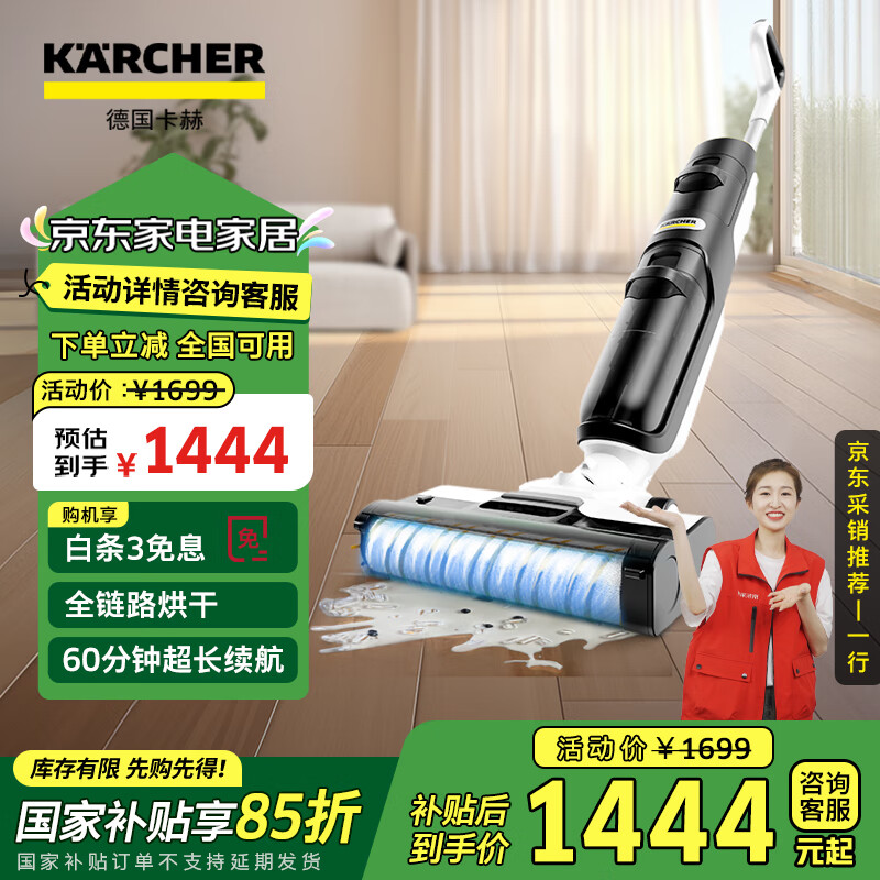 【自营】KARCHER德国卡赫国家补贴无线智能洗地机全屋清洁洗拖吸一体家用全链路烘干60分钟长续航FCV4Plus