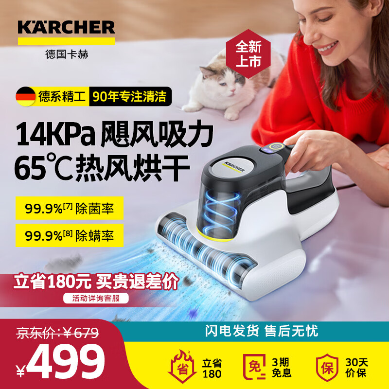KARCHER德国卡赫 小懒阳 手持家用床上吸尘除螨一体机大吸力紫外线杀菌除螨仪65℃热风烘干 新品MVH-M3