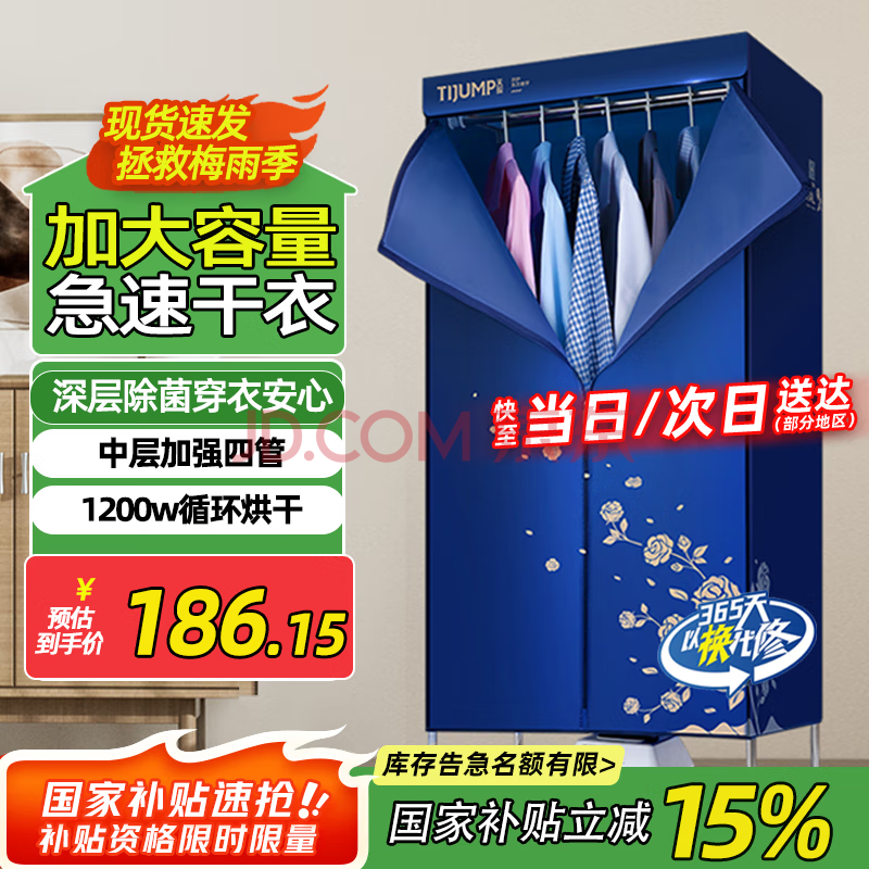 天骏小天使 烘干机家用干衣机小型婴儿烘干衣服神器双层大容量烘衣机烘干衣柜TJ-SM368不锈钢管加强