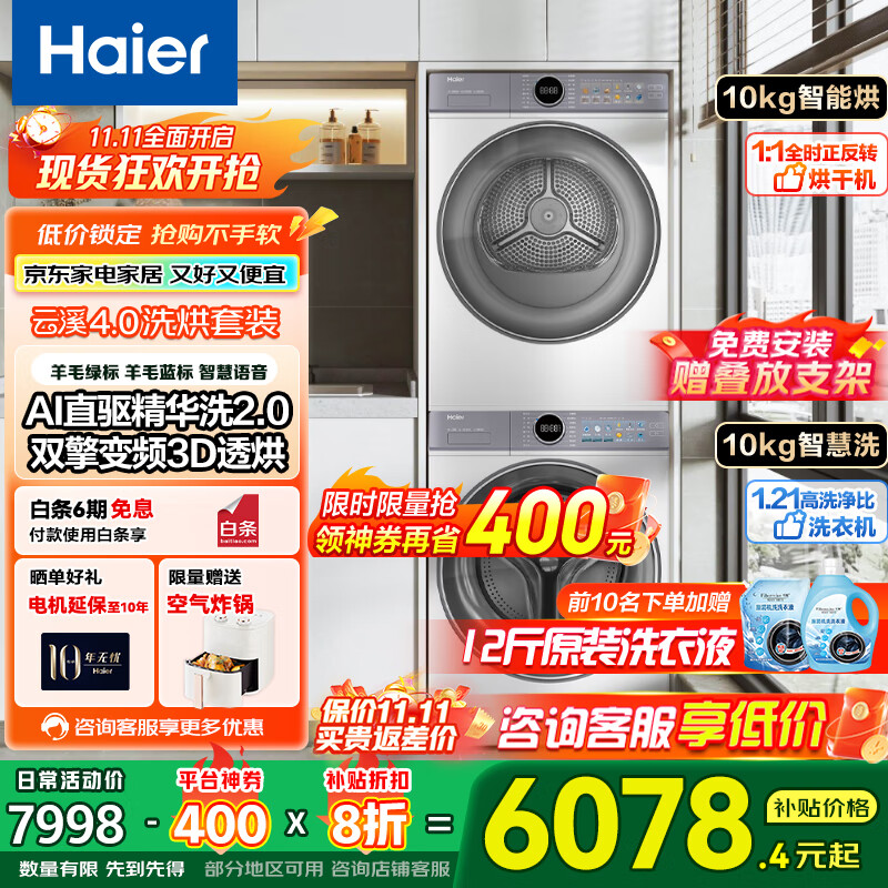 海尔【国家补贴20%】云溪4.0洗烘套装77EW/云溪376+376洗烘套装洗衣机带烘干一体套装滚筒全自动洗衣机烘干机组合 【云溪4.0】77E洗烘套装+直驱精华洗+透视烘干