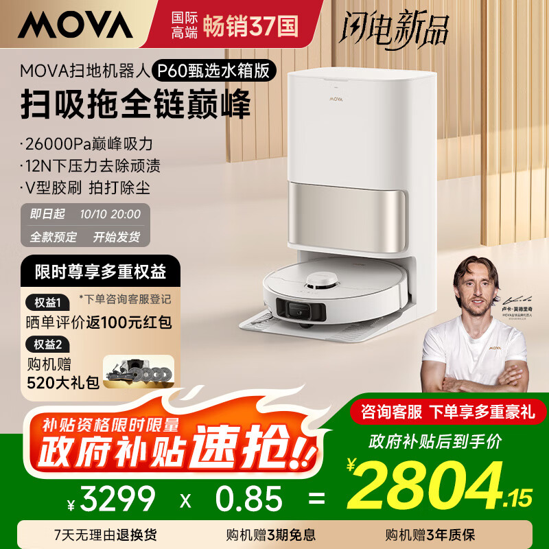 Mova【重磅新品】扫地机器人扫拖一体自动清洗家用智能烘干拖布 吸扫拖一体扫地机P60甄选水箱版