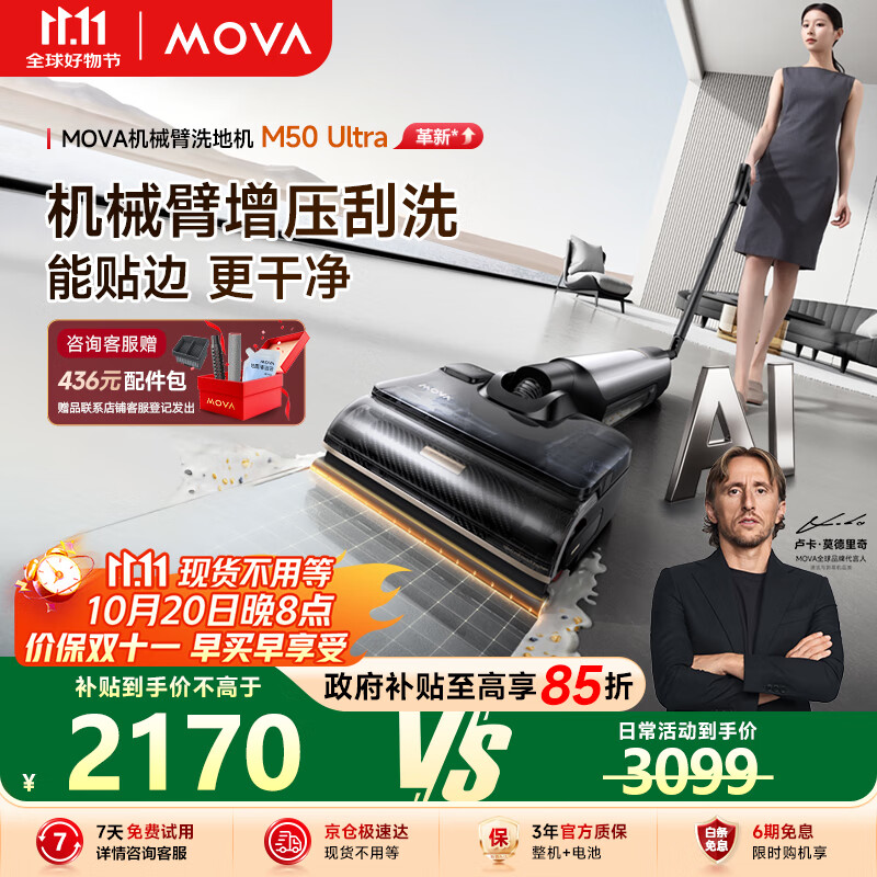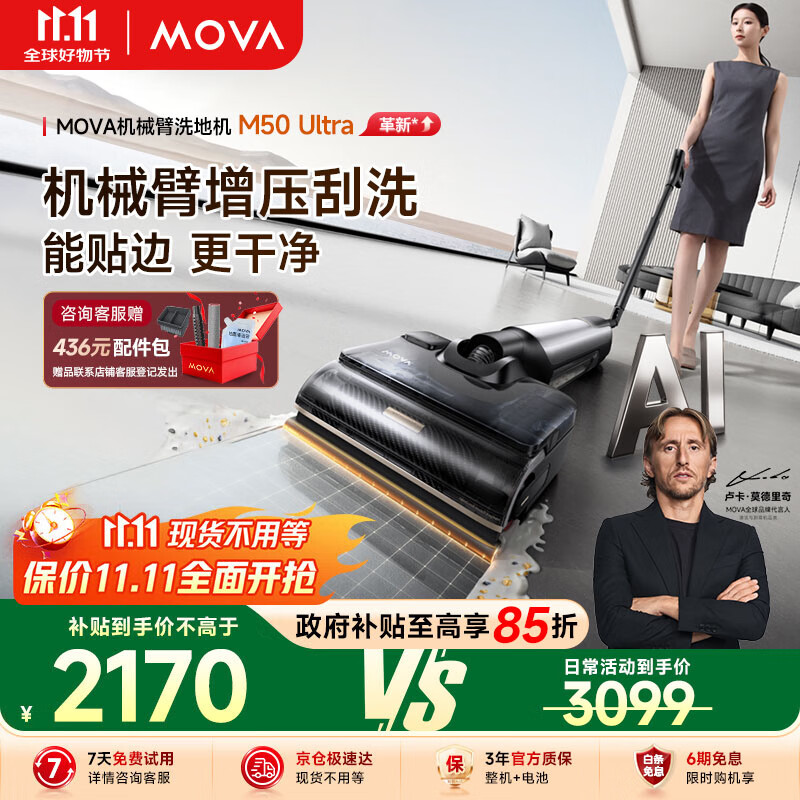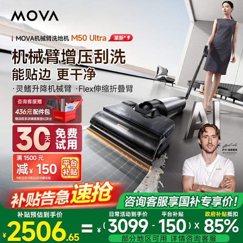Mova机皇M50 Ultra AI机械臂 全向助力 0缠毛拖地机洗拖一体吸拖自动清洗家用高温热水烘干洗地机