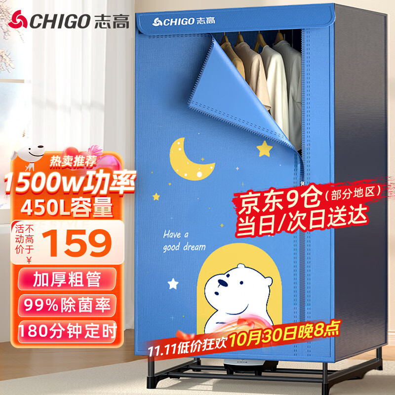志高(CHIGO)【1500W快烘+450L】干衣机家用烘干机烘衣机烘衣服神器婴儿衣物暖风风干机大容量定时烘干衣柜JT16