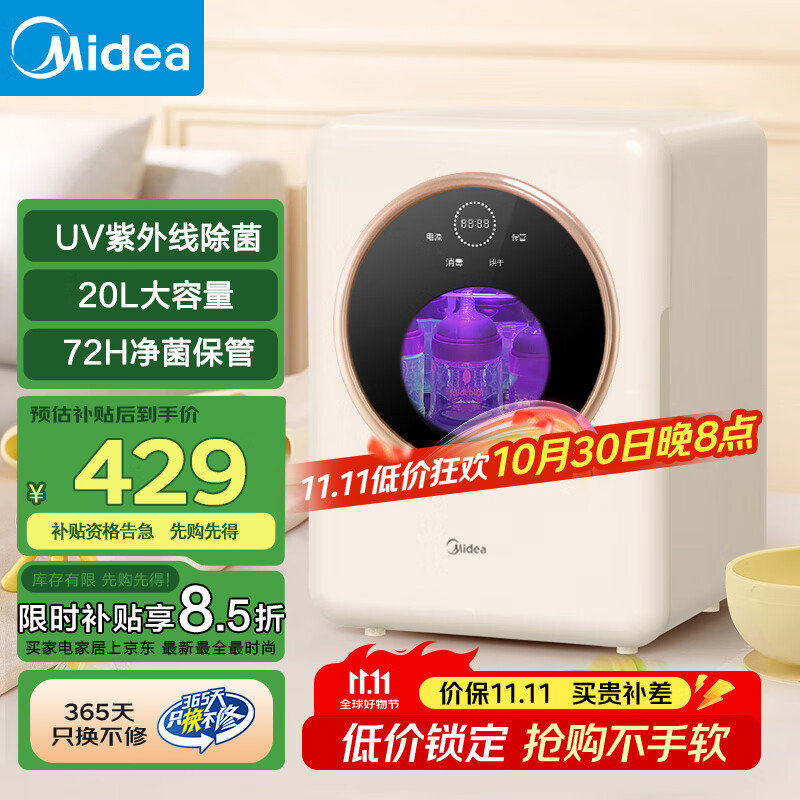 美的(Midea)消毒柜婴儿 奶瓶消毒柜烘干一体机 奶瓶消毒器紫外线新生儿烘干机 【奶瓶消毒】性价比优选 20L 紫外线消毒