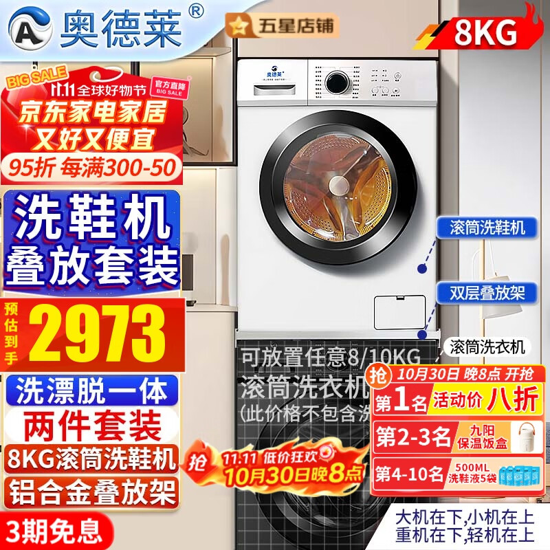 奥德莱(AOD)滚筒洗鞋机全自动洗脱一体家用烘干刷鞋机全自动洗鞋子清洁神器专业全自动洗鞋机洗烘一体免拆鞋带 8KG非烘干洗鞋机-白色+双层叠放架