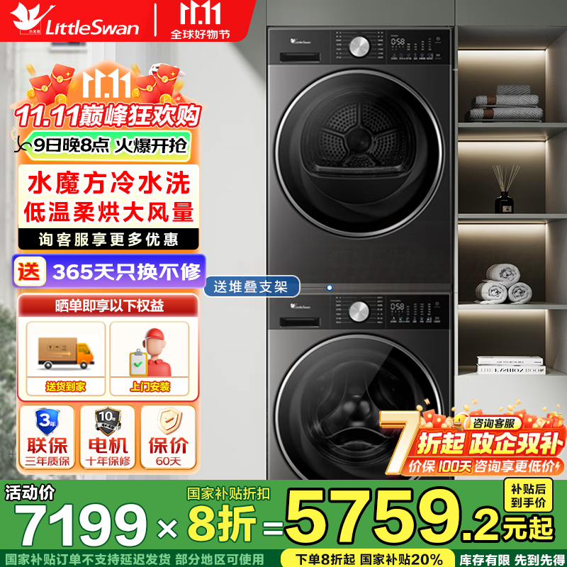 小天鹅(LittleSwan)洗烘套装小乌梅2.0/小乌梅3.0滚筒洗衣机全自动10+10变频热泵烘干机 水魔方纯平套装组合 家电补贴 【3.0标准版SC28】超微净泡+机皇+变频热泵