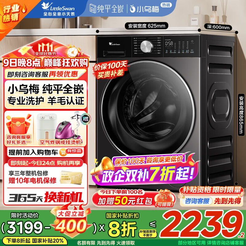 小天鹅(LittleSwan)小乌梅3.0滚筒洗衣机全自动10公斤单洗/洗烘一体机 纯平全嵌智能投放 超微净泡 小钢炮 家电补贴 【3.0轻享版无烘干】漩瀑水流+智能投放SC08
