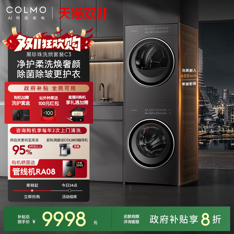 COLMO黑珍珠洗烘套装C3家用10KG纯平全嵌滚筒洗衣机热泵式烘干机