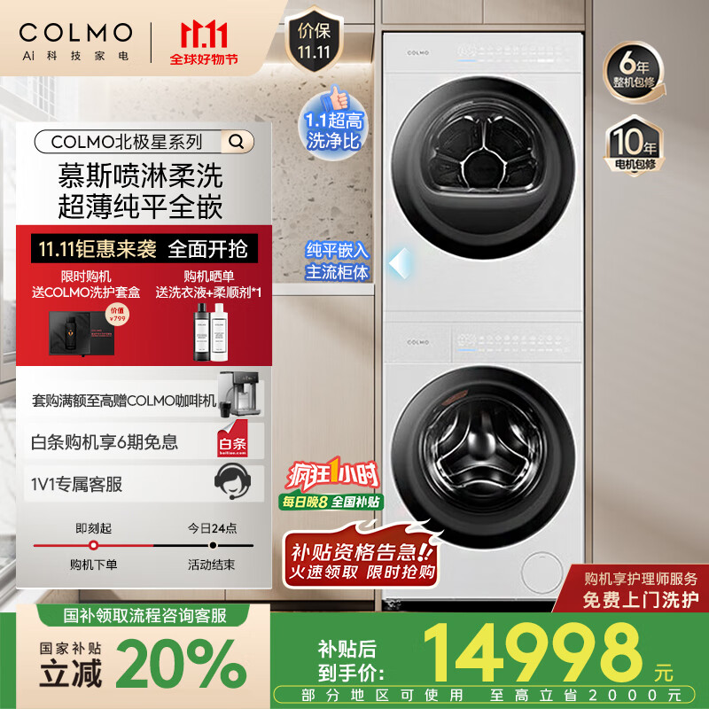 COLMO/COLMO CLGUT10WEL+CLHPB10WEL 洗衣机 10KG滚筒全自动+热泵烘干机