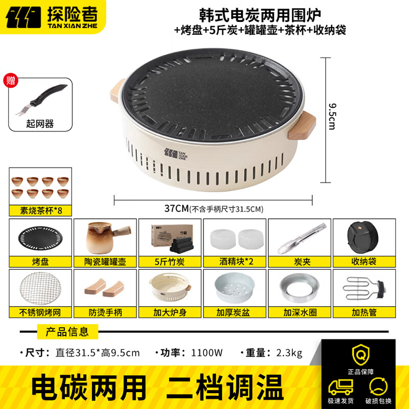 百亿补贴:探险者围炉煮茶电碳两用烤火炉套装器具冬日烧烤炉家用室内电陶炉电围炉 电炭两用围炉【烤盘+5斤炭+罐罐壶+杯+包】