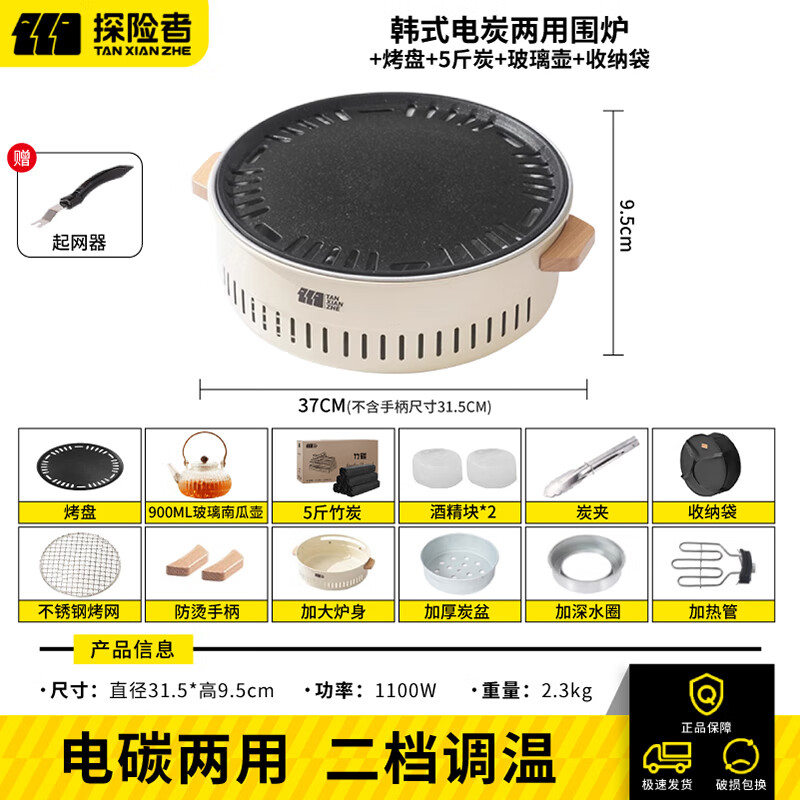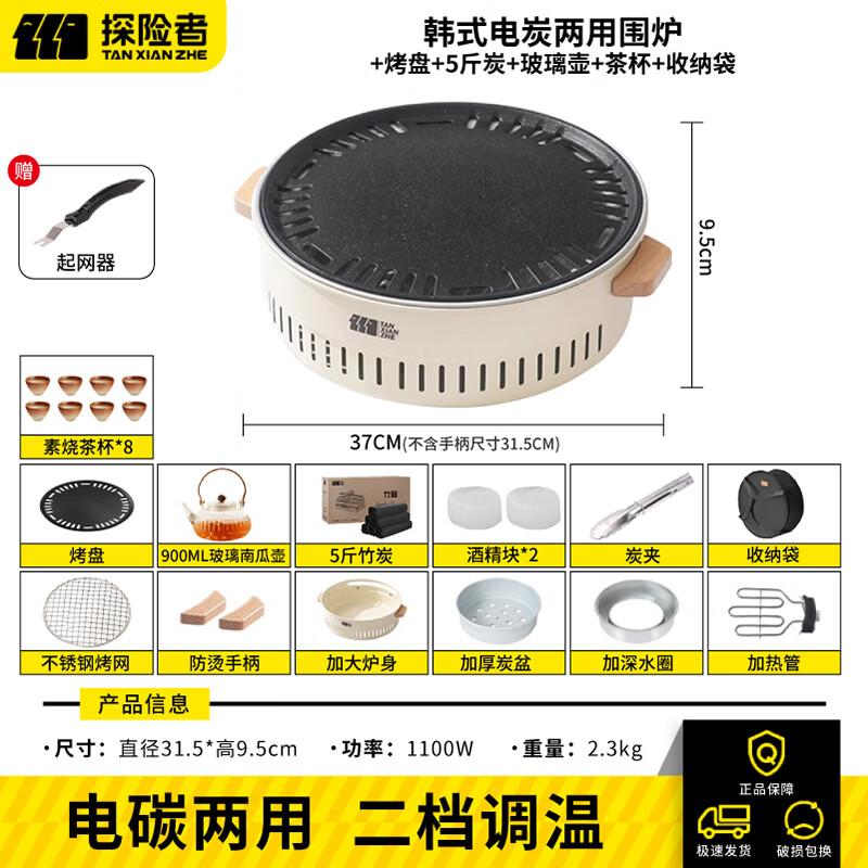 百亿补贴:探险者围炉煮茶电碳两用烤火炉套装器具冬日烧烤炉家用室内电陶炉电围炉 电炭两用围炉【烤盘+5斤炭+玻璃壶+杯+包】