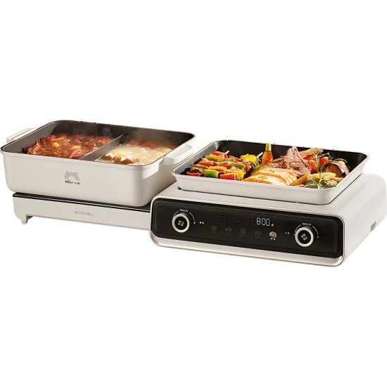 PLUS会员:小熊 电火锅锅折叠多功能 电蒸锅多用途家用料理烤肉锅小熊 鸳鸯锅