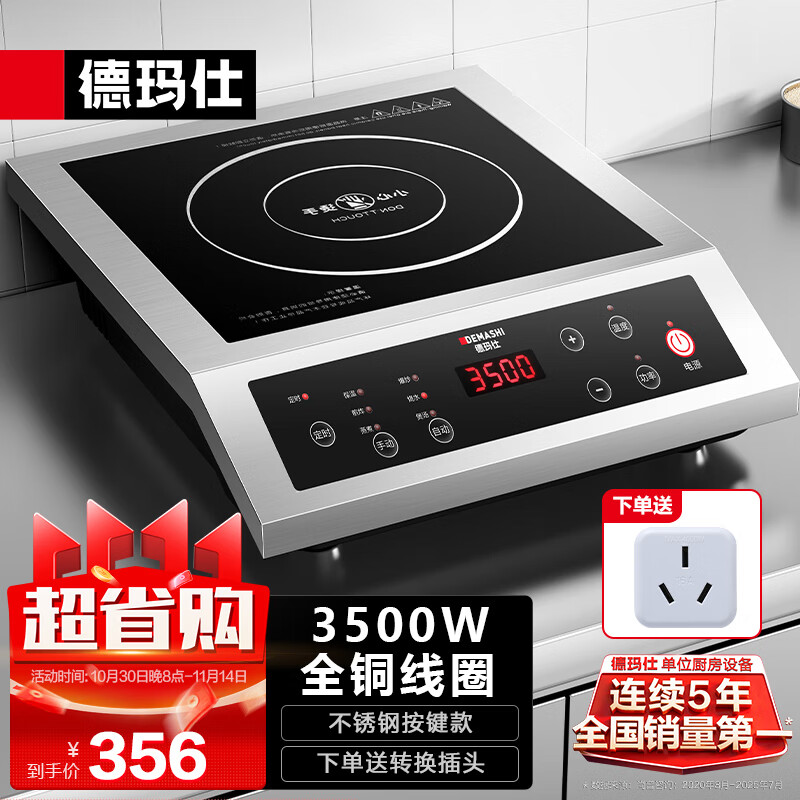 德玛仕(DEMASHI)商用电磁炉大功率3500w大电磁炉炒菜电池炉电磁灶大锅灶炒菜电炒炉火锅【全铜线圈】 不锈钢款【3500W按键】BT-3500A