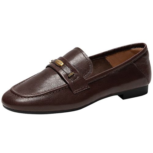 棕色 34 千百度低跟羊皮乐福鞋女2025秋季新款通勤正装小皮鞋透气深口单鞋