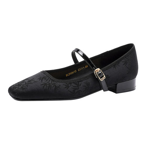 黑色织物/牛皮革(涂覆层除外) 34 哈森新中式玛丽珍女鞋秋季新款禅意旗袍鞋平底单鞋HL249415