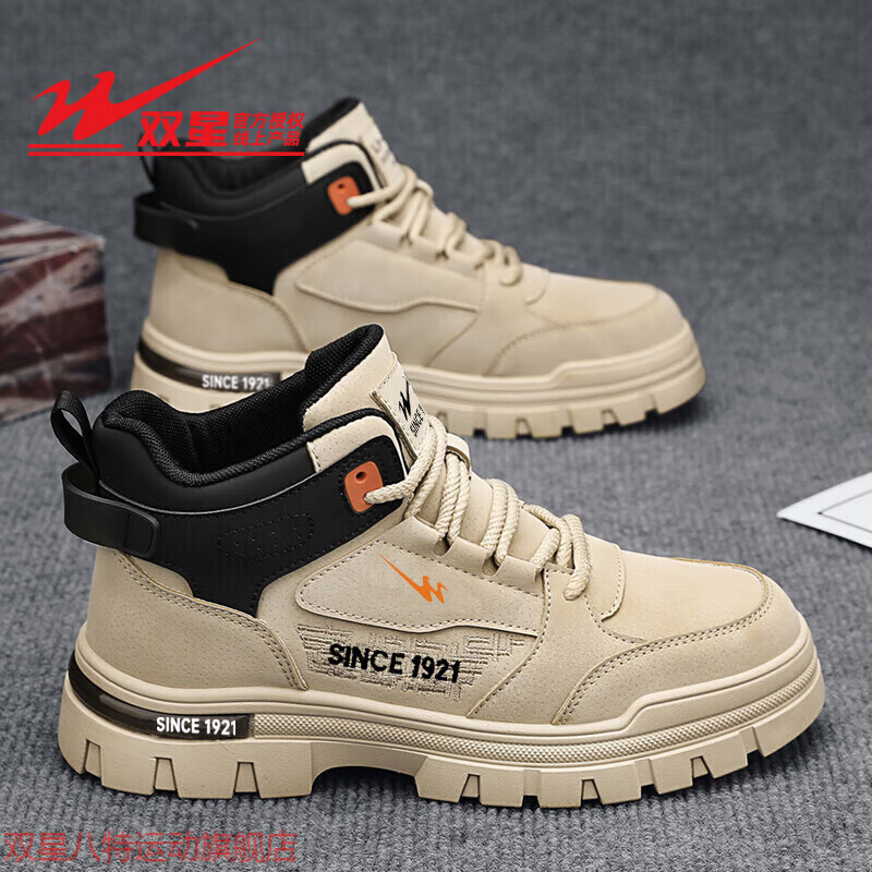 双星八特高帮男鞋秋季板鞋男休闲2025新款男士马丁靴运动鞋子男款工装靴子 米色WDSM-66454 41