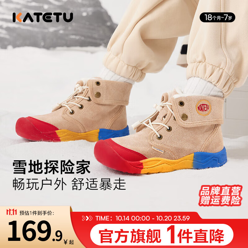 卡特兔户外儿童运动鞋男童秋冬宝宝防滑加绒儿童棉鞋女童马丁靴 米白 27 内长16.5cm 脚长约15.7-16.2