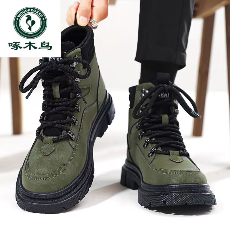 百亿补贴:啄木鸟2025春秋季鞋子男靴休闲复古厚底增高工装百搭户外运动防滑马丁靴 啄木鸟专柜&军绿色【极速发货】 45 (290mm)