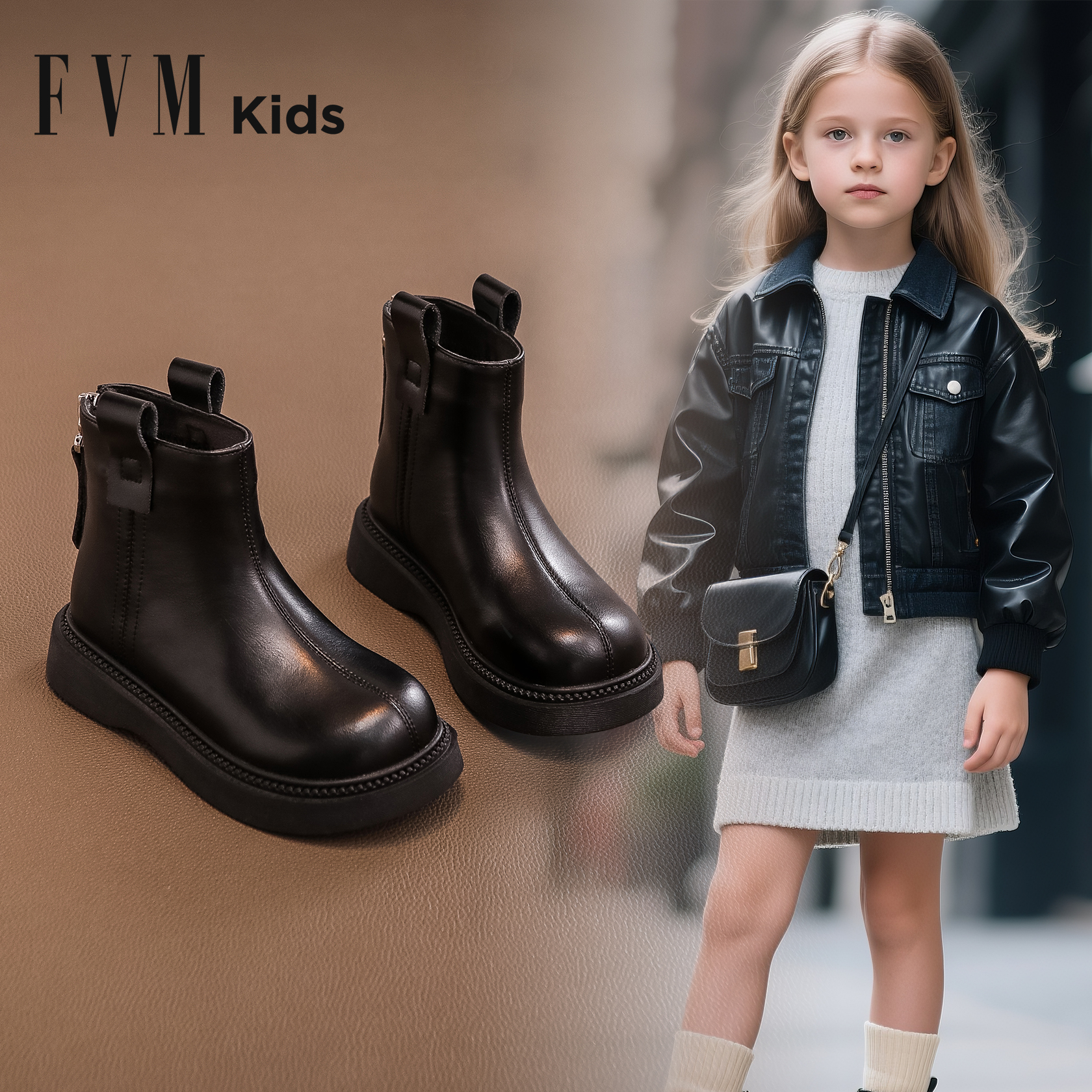 棕色单靴 23码 短靴女童马丁靴秋冬加绒皮靴