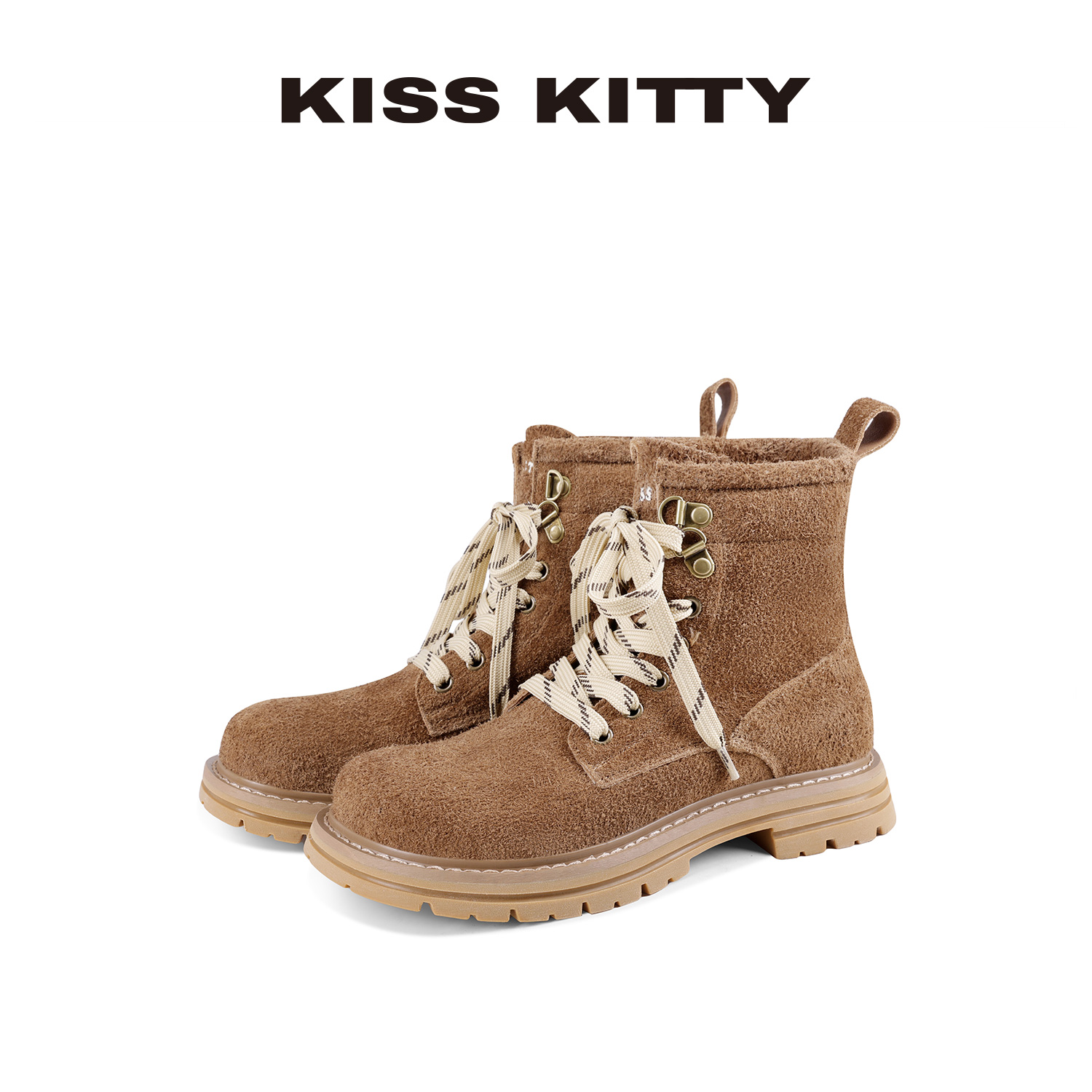焦糖色 35 KISSKITTY真皮马丁靴女2025年新款秋季厚底复古百搭英伦风短靴子