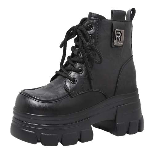 黑色【跟高7.5厘米】 35 冬季矮靴厚底马丁靴戈美其英伦风