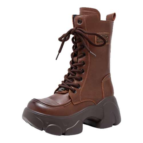 棕色单里款 35 大码42真皮厚底增高马丁靴女