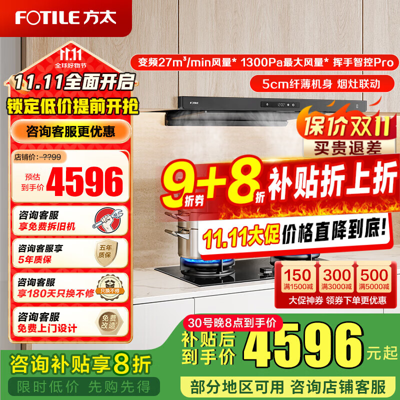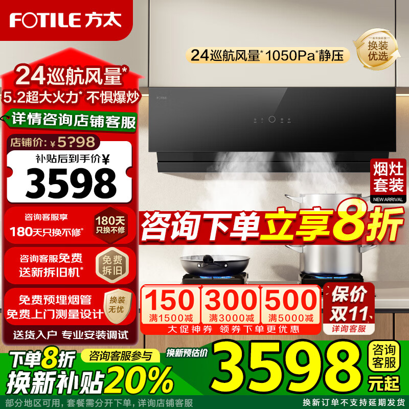 方太(FOTILE)方太抽油烟机纤薄F3S-G欧式顶吸超薄27巡航大风量烟灶套装烟机灶具套装家用变频套餐烟灶联动挥手 【5.2Kw*联动定时】F3S-G+TE21