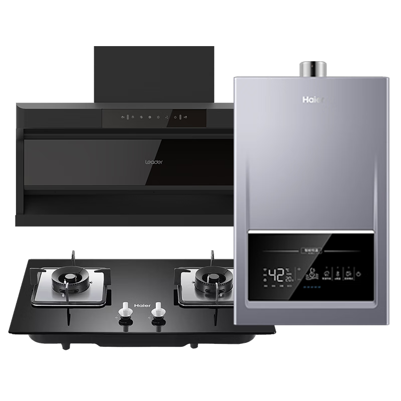 海尔抽油烟机大吸力静音一级能效家用24烟机灶具套装超薄顶侧三吸挥手智控以旧换新烟灶二三件套Leader 【三件套】24立方+5.2KW灶+16L恒温热水器